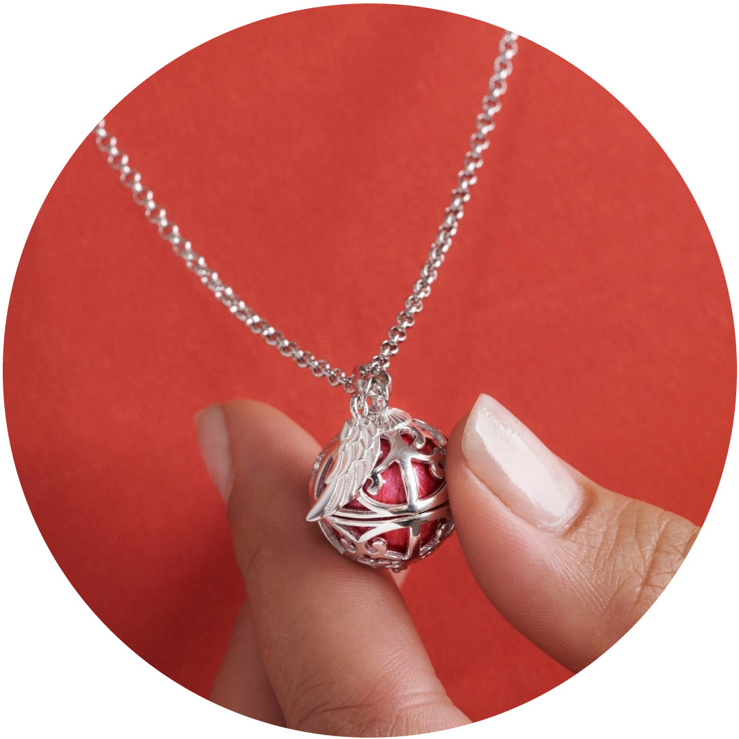 Engelsrufer Necklace Angel Whisperer with Wing Pedant Sound Ball Rose
