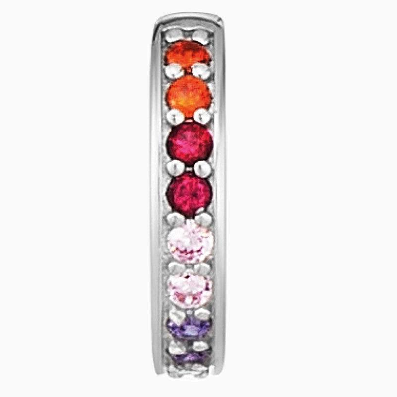 Hoops with Multicoloured cubic zirconia stones. Enchanting piece of jewellery with a fine shimmer. Beautiful filigree details.